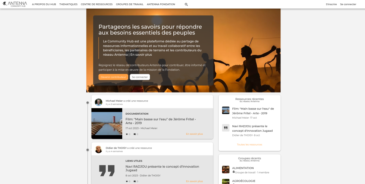 Une plateforme dédiée au partage de ressources informationnelles et au travail collaboratif entre les bénéficiaires, les partenaires de terrains et les contributeurs du réseau Antenna.